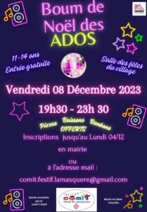 Préparez vos lettres de au père Noël . Le Messager du Père Noël accompagné par les membres des Mômes Piaf viendra la récupérer chez vous (le circuit vous sera prochainement communiqué) et vous embarquer pour sa parade qui se terminera à la salle des fêtes.