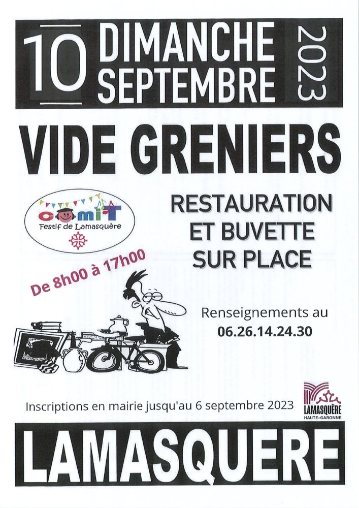Dimanche 10 Septembre de 8h à 17h : vide grenier du comi’T Festif