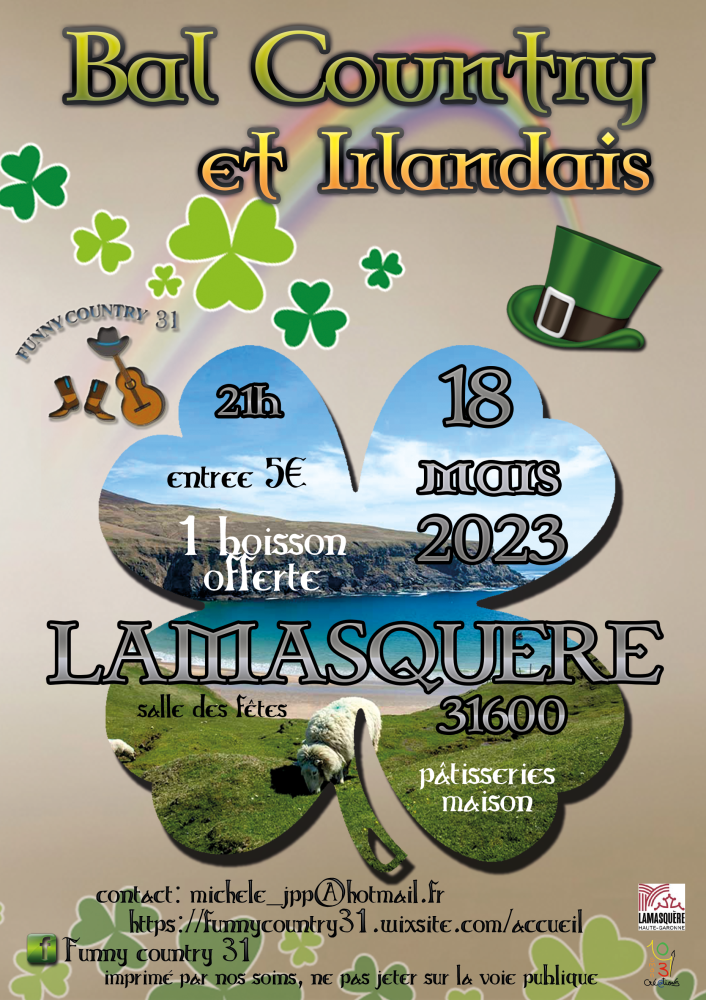 Samedi 18 Mars : Bal Country et Irlandais.
