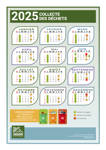 Le Muretain Agglo assurera le ramassage des encombrants sur notre commune 4 jours par an. Pour l’année 2025, les jours sont : le 06 mars, le 06 juin, le 26 septembre et le 05 décembre.